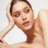2/ Lehce naneste barvu na tváře a poté konečky prstů rozetřete směrem ke spánkům.